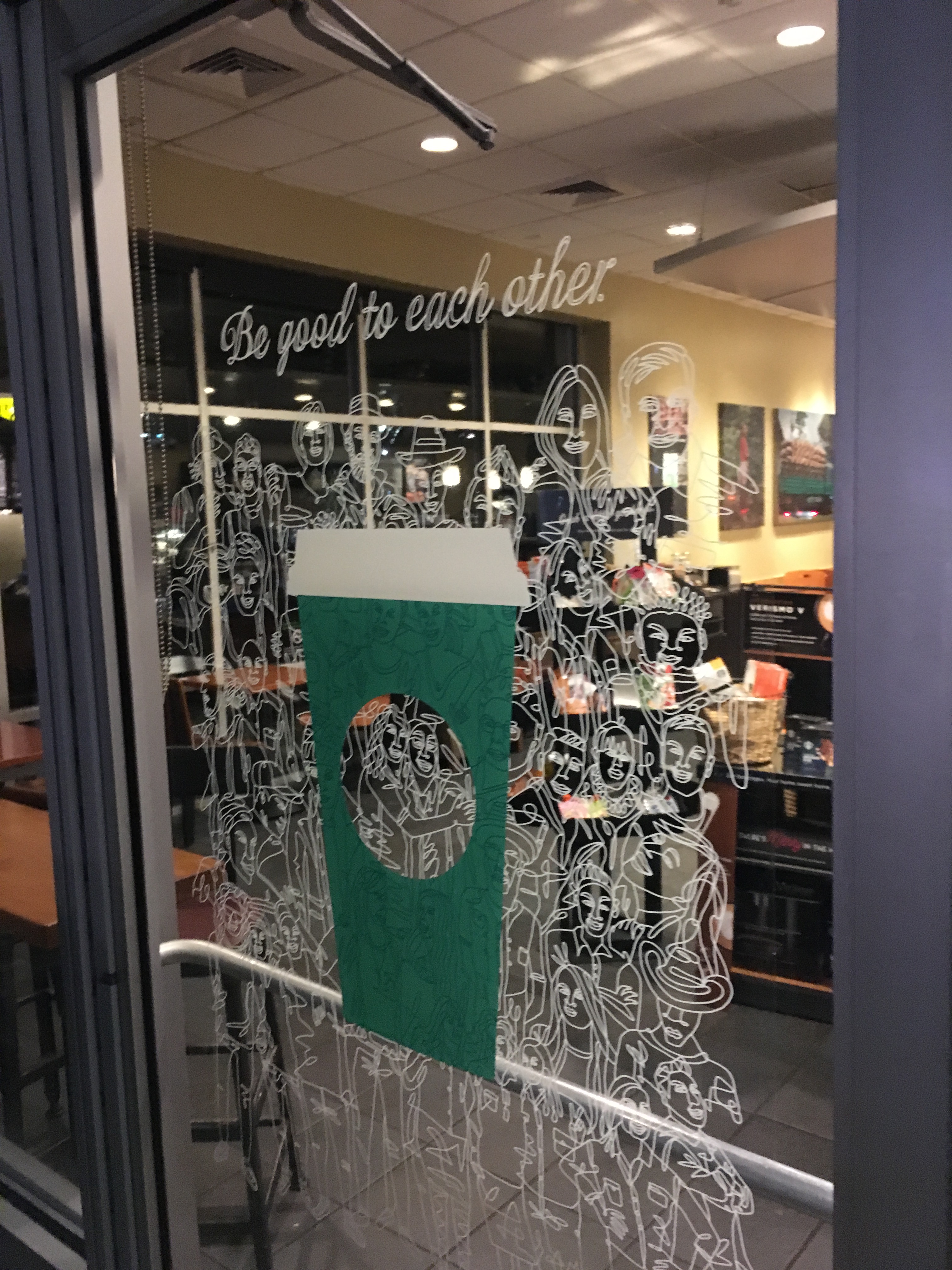 So, obviously, this type of post is coming quite late to the party, but I hope people may read it and start conversations with others that are actually beneficial with both people truly wanting to understand their viewpoints. There are too many people who want to talk over each other rather than stop to listen and learn. Maybe I am acting a little bit naive, but I like to believe that if more people were to encourage this kind of behavior that maybe our country would be more united, positive, and just a little more peaceful. I know it sounds so cheesy, but with a little reminder from the door of your local coffee shop, it can start with the motivation to be good to each other.
