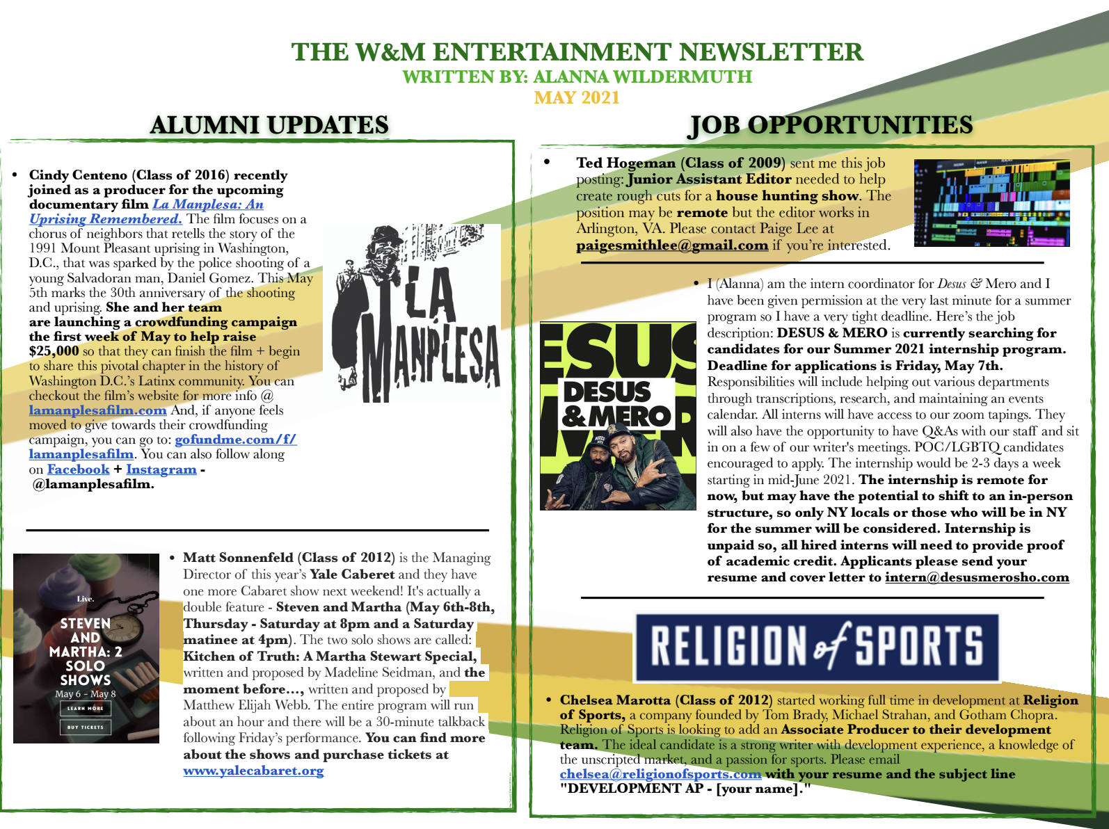 Desus & Mero: One of my biggest achievements of the year started out with being promoted from Production Secretary to Legal Rights and Clearances Coordinator for Desus & Mero in January and then LR&C Associate Producer in June. It was definitely a tough transition since the job was so different from my previous one and I cried a lot from stress, anxiety, and uncertainty the first few months. I am definitely a type A person so I felt very overwhelmed and put a lot of pressure on myself to do things perfectly. I was lucky though to have someone train me throughout that time so that, by the end of March, I felt a lot more secure in my role. It is definitely still challenging and I learn something new each episode, but I now feel like I am figuring out a big puzzle that involves a lot of problem solving. It is really satisfying when the day is over and the show comes together. Along with my new position, I run our intern program which I am incredibly proud of. Even during a pandemic, we were able to have interns join us remotely to have a mostly educational and practical experience with the show.