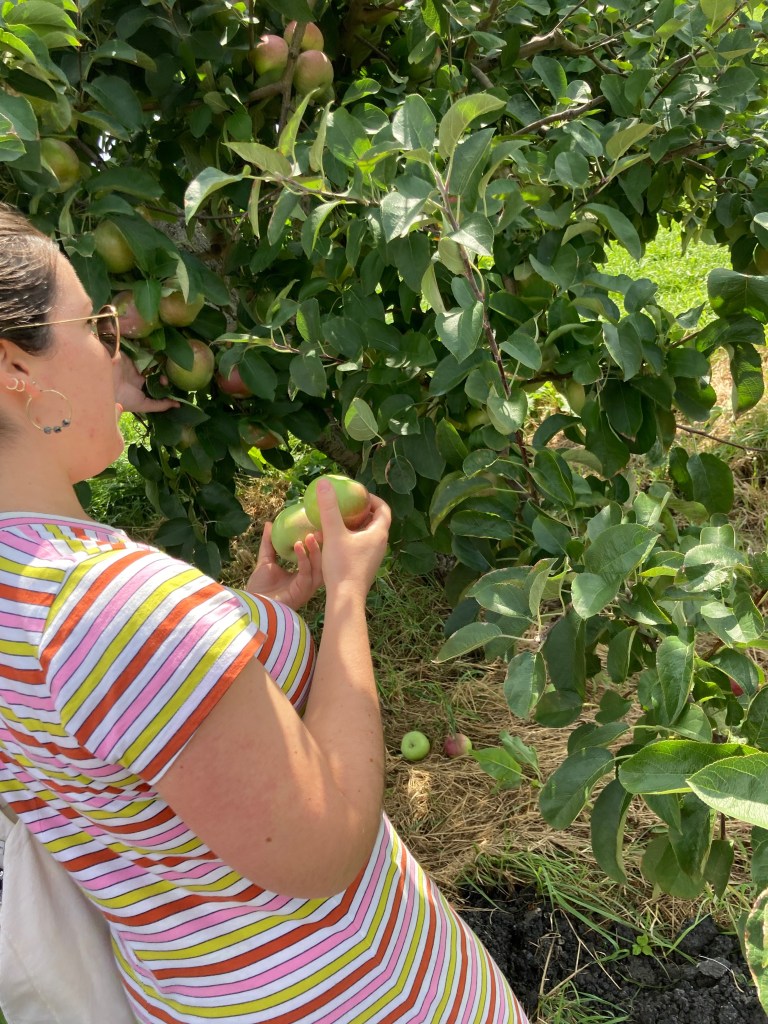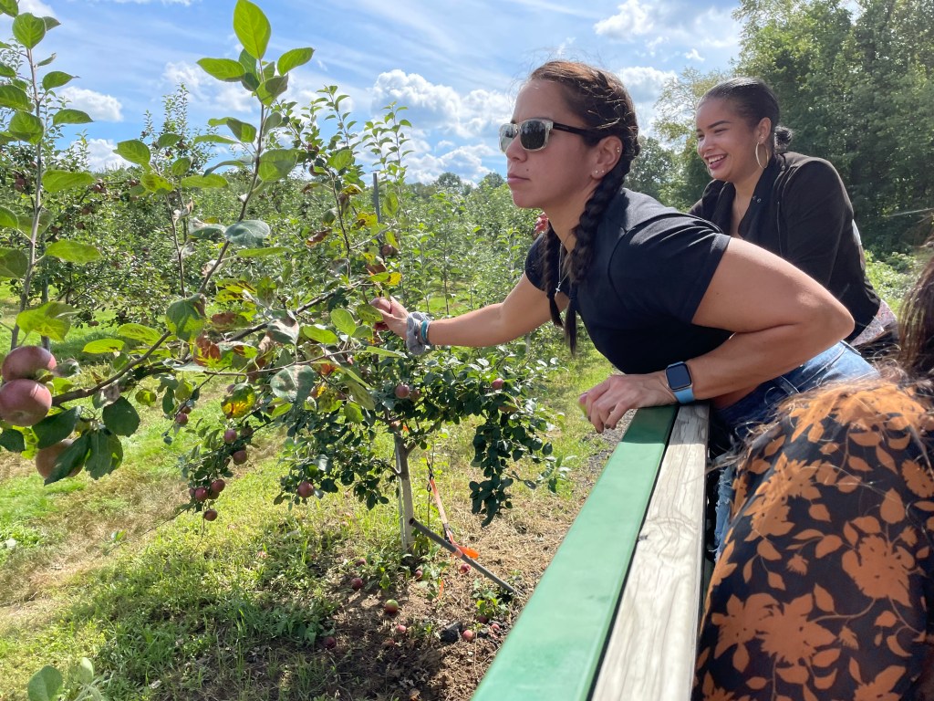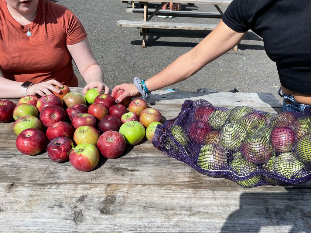 This year, due to being overly scheduled during October, I moved Apple Day to September 11th (the only Saturday that I wasn’t working or visiting friends/family). This year the group included my friends Anita and Megan (who both live in NY and are Apple Day regulars – Megan hasn’t missed a single one and Anita has only missed one), Laura (who visited from VA and experienced her first Apple Day this year), and my younger sister Beth (who traveled in from PA for the weekend for her second time experiencing the tradition). We met at Grand Central Terminal to grab a coffee at the Doughnut Plant before we rode the Metro North about an hour and half upstate to Croton Falls. When we got off the stop, we took the shuttle to the orchard (it’s only $5 per person and so much easier than calling a Lyft/Uber since they aren’t as reliable in the area). Somewhat out of laziness and not wanting to search for another option, but also because I love the orchard, we always go to Outhouse Orchards. The farm has a weird name but it is a beautiful location.