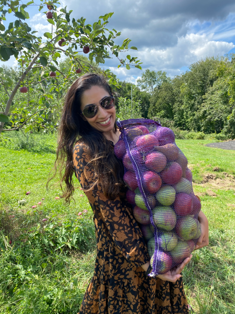 Without fail, I always think Apple Day is the best day and way to start the Fall Season. The trip upstate and back is beautiful as the leaves are changing the further north we get and I love the fun conversations as my friends get to know each other. The air at the orchard feels fresh and clean and even though we went pretty early this year, there was still a slight chill in the air. Everywhere we look, the views are gorgeous as the hills roll out into the distance and the colors on the farm are bursting as the fruit is maturing. I know that the tradition to go to the apple orchard is not a unique one (my instagram is covered with photos of family and friends at the orchard), but I wonder how many people look forward to it the way I do. Every year I get very excited about it and almost immediately plan for the next year the day after my friends and I go.