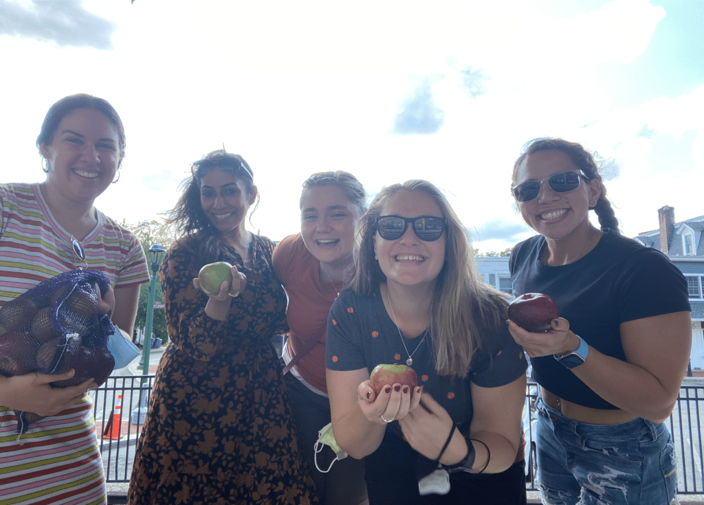 At the picnic tables, we split up the fruit amongst ourselves. We each got about 11 apples and 6 pears to take home to enjoy which is such an incredible deal! My favorite purchase of the day was definitely the apple cider donuts. They are warm, sweet, and the apple cider flavor is so comforting. I got enough for us each to have one there and then an extra to bring home to enjoy. The final activity we did before heading back to Manhattan was walk through the market where they sell fresh produce, canned salsa, jams, and jellies, and seasonal baking kits. I bought apple butter and apple salsa made from the apples grown at the orchard.