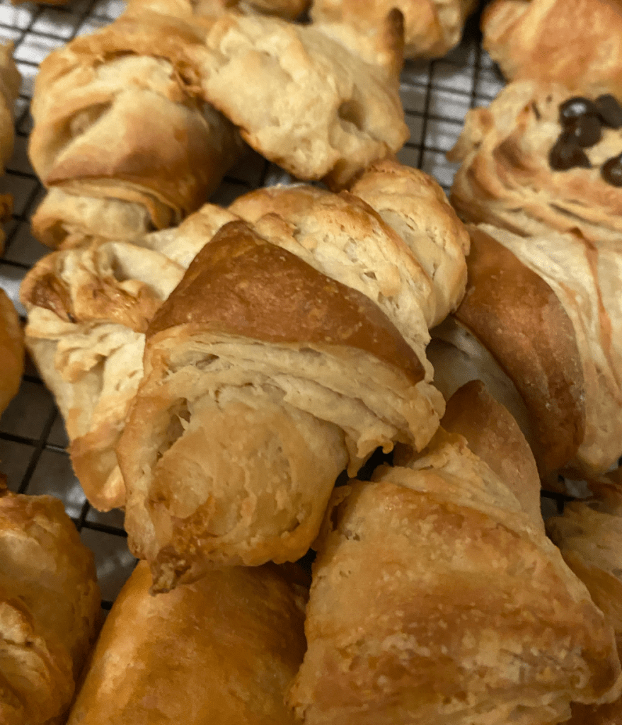 BAKING CHALLENGE: I completed 9 challenge posts in total through 2021. Moving into 2022, I hope to keep up with these challenges but possibly expand it to try not only baking recipes but also try other types of culinary skills in the kitchen. I really peaked with my 2021 challenge in October when I made a beautiful pumpkin roll that was truly a perfect balance of flavors. Pete and I both loved it so much I made it again in November (read all about it at this link). I did complete another challenge by making croissants, but I ran out of time to write up a post. Plus, they were no where near the success that I wanted them to be. I don’t think my butter was cold enough so everything became kind of mushy and they didn’t bake properly in the oven – see below: