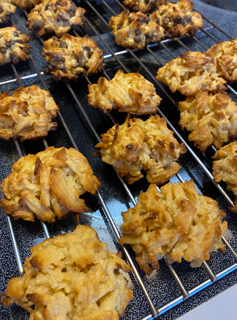 In December, I didn’t really do a baking challenge but I did make all of my traditional Christmas cookies which are spritz cookies, peanut butter blossoms, and snicker doodles. My family usually does a cookie competition on Christmas day. This year, we didn’t get competitive but we did make some fun cookies. Since my grandfather’s side of the family is Jewish, I grew up having latkes and matzah ball soup. When I saw the recipe for “Latke cookies” on food52.com I had to try it! See the pictures below as well as the link here for my vlog to see how I made them.