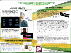 - Send out 4 more W&M Entertainment Newsletters this spring and another 4 during the fall.