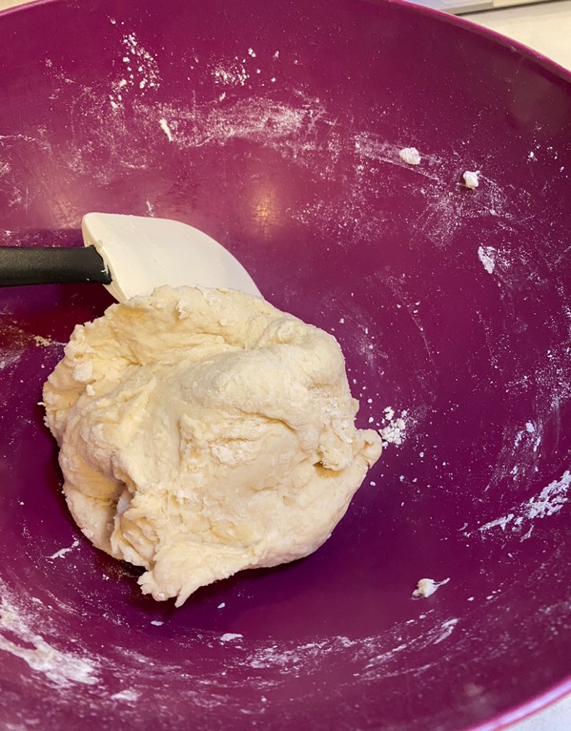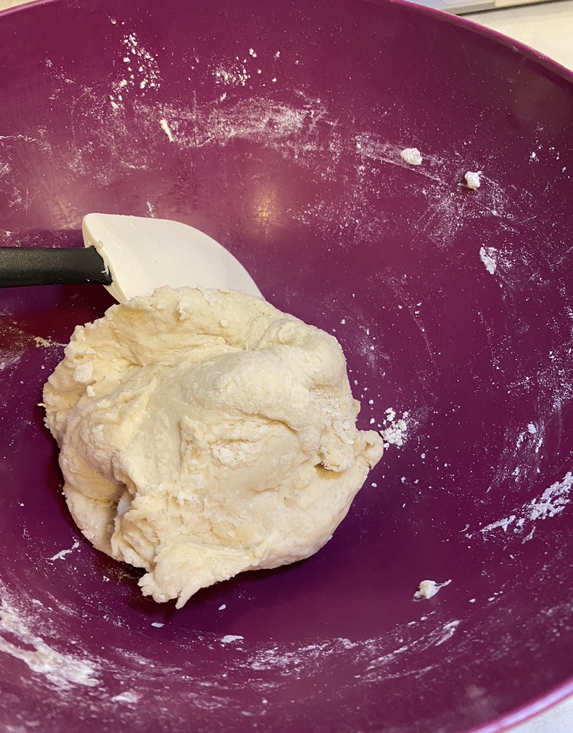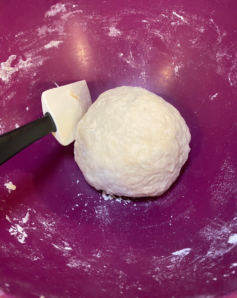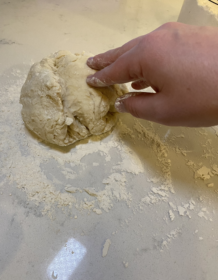 I dumped the dough onto a floured surface and kneaded everything together about 12 or so times until it became a smooth, consistent texture. The recipe says to add a little more flour or water if the dough needs it, but I was able to avoid that step. I placed the dough back into the bowl to rest for about 10 minutes.